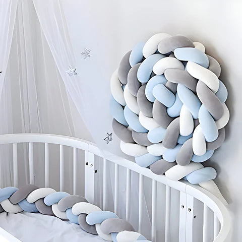 TOUR DE LIT BÉBÉ TRESSÉ - Grise & Bleue