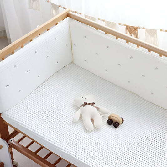 Nos tours de lit sont fabriqués dans des matières douces et respirantes pour le confort et la sécurité de bébé. La plupart sont lavables en machine pour un entretien facile (et on sait que c'est important avec un bébé !).